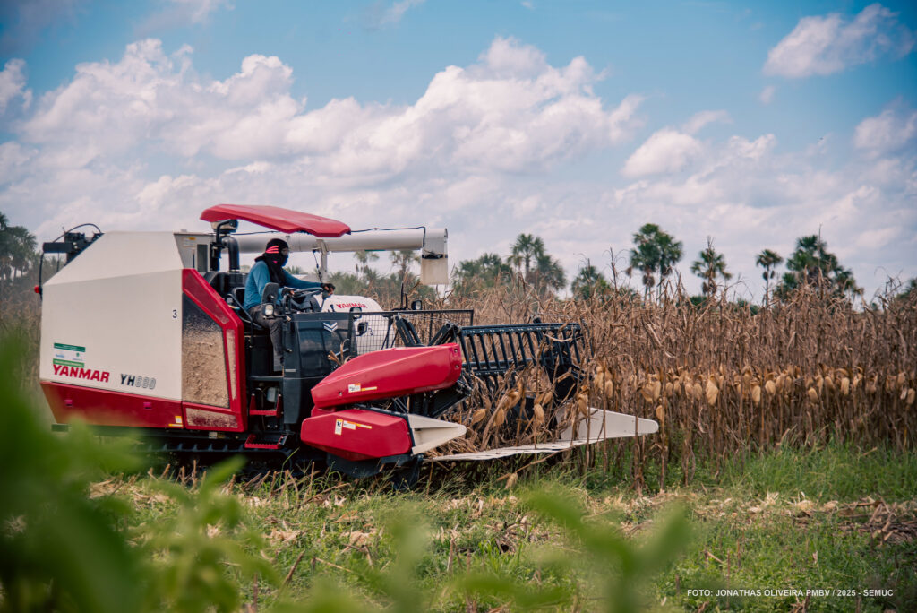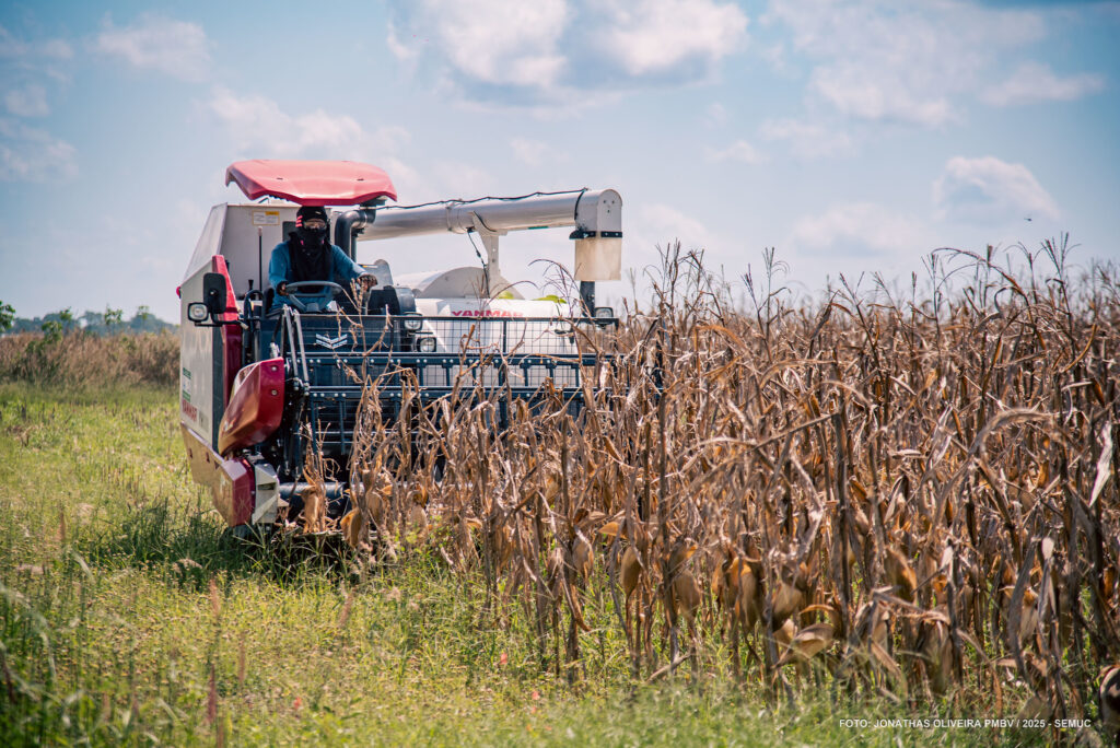 Colheitadeiras e caminhões da Prefeitura de Boa Vista continuam na zona rural do município para colheita de milho seco dos agricultores familiares e comunidades indígenas, um importante momento para os trabalhadores do campo, marcando o resultado de meses de dedicação às lavouras. Neste ano, durante o mês de maio, foram plantados 865 hectares de milho em todo o município.