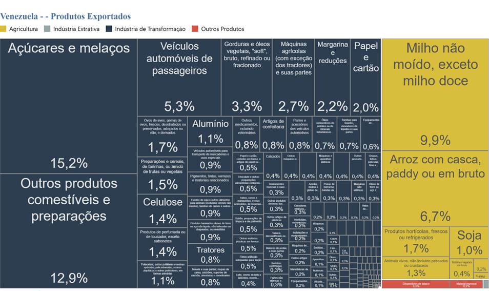 Além disso, a participação da Venezuela no total do comércio exterior brasileiro permaneceu modesta na maior parte do período, raramente superando 0,4% desde 2021, o que indica que, apesar da relevância histórica, o peso relativo da Venezuela diminuiu ao longo do tempo.