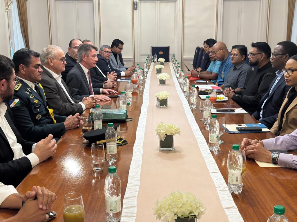 A comitiva do governador e de secretários do Governo do Estado foi recebida pelo presidente da Guiana, Mohamed Irfaan Ali, acompanhado de principais ministros, para discutir estratégias de ampliação do comércio bilateral, integração logística e oportunidades conjuntas em setores como agricultura, energia, infraestrutura, turismo e exportação de produtos de Roraima para o mercado guianense e para todo o bloco do Caricom (Comunidade do Caribe).