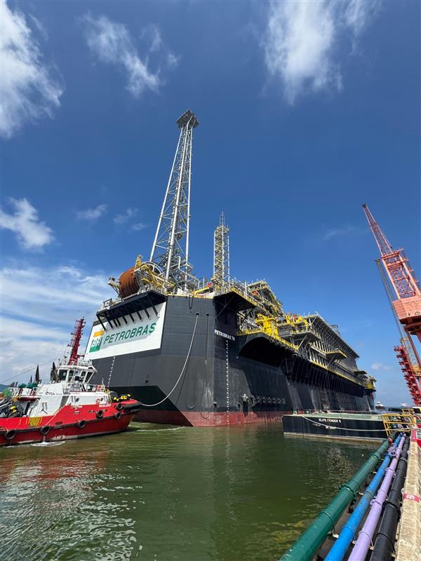 O navio-plataforma P-78 deixou ontem, 13/07, o estaleiro Benoi da Empresa Seatrium, em Singapura, rumo ao campo de petróleo de Búzios, no pré-sal da Bacia de Santos. A plataforma será rebocada até a locação com tripulação a bordo, o que vai permitir antecipar o início da produção em cerca de duas semanas. O transporte na condição tripulada permite que diversos sistemas complexos do FPSO sejam mantidos em condição operacional, a continuidade do processo de comissionamento e o treinamento das equipes nesses sistemas, diminuindo o tempo total entre a chegada na locação final e o início da produção de petróleo.