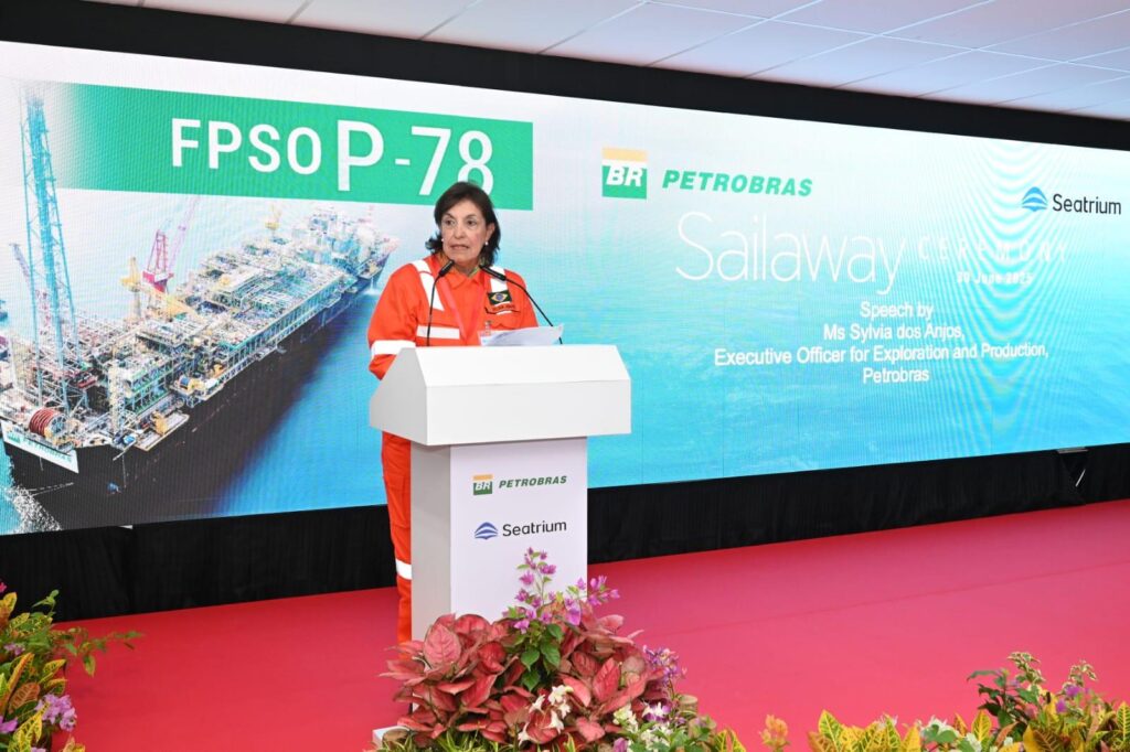 Em 30/6, as diretoras de Exploração e Produção, Sylvia Anjos, e de Engenharia, Tecnologia e Inovação, Renata Baruzzi, da Petrobras, visitaram o navio plataforma P-78, no estaleiro em Singapura. Na ocasião, participaram de cerimônia que celebrou a liberação da unidade para navegação para locação definitiva.
