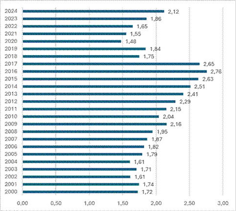 Em 2016, ano anterior à vigência da reforma, o país registrou um pico de 2,76 milhões de novas ações trabalhistas. Após uma queda significativa nesse número nos anos posteriores à reforma, a tendência se inverteu. O volume de novos processos subiu de 1,65 milhão em 2022 para 2,1 milhões em 2024.