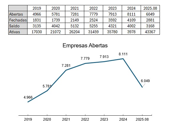 Entre 2019 e agosto de 2025, Roraima registrou um saldo positivo de cerca de 29 mil empresas entre abertas e fechadas, um número expressivo que demonstra a vitalidade do ambiente de negócios no Estado.